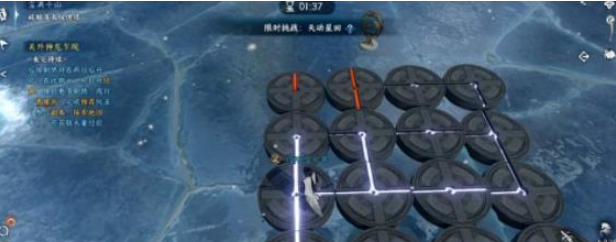 8、前往(1005,1026)完成引导后等待第二次暴风雪来袭,触发场景开始解密浑天仪迷阵,解密图案如下: