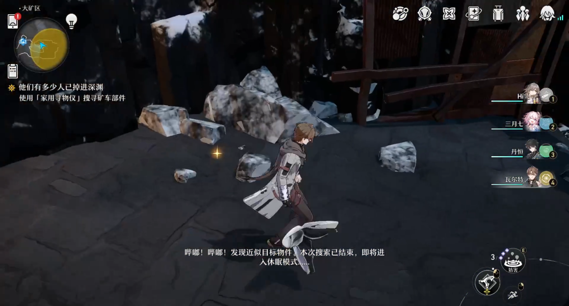 希儿需要寻找修复矿车的部件,而我们刚好捡到了家用寻物仪,查宝。不用多想就是用它来寻找部件